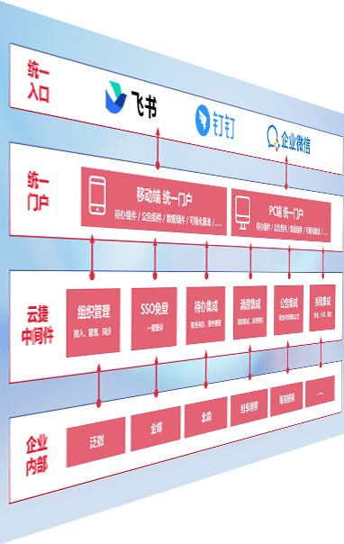 对协作平台提供支持服务,,,,支持企业应用与协作平台对接,,包含组织同步、、、消息集成、、待办集成等。。。。支持目前主流的协作平台:钉钉、、、、企微和飞书。。。